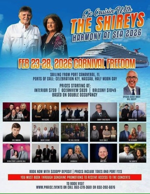 Based out of West Columbia, SC, The Shireys are a Southern Gospel family trio. Those who know the ministry of the Shireys know that their sole desire is to lift up Christ through message-filled music and testimony. While they strive for excellence in each area of performance, their focus is on the souls of the listeners. You will be encouraged and uplifted as you experience the ministry that is the Shireys. Wayne and Darlene, both, carry on Gospel music from their roots, where their families were singers, ministers, and musicians in their local area throughout their childhood. There is no better harmony than family harmony. With their dynamic blend and anointed song writing, the Shireys bring not only a sound, but also an experience unlike any other. The Shireys present a compelling musical collection encompassing every area of the Gospel genre. From the classic βCamp Meeting styleβ to the progressive ear, there is truly something for every age. It is the earnest desire of the Shireys to usher each listener into the presence of God, and stand in awe at how He will work. So, what can you expect at a Shireys concert? It has been said that you can buy a ticket for the whole seat, but you'll only need the edge!